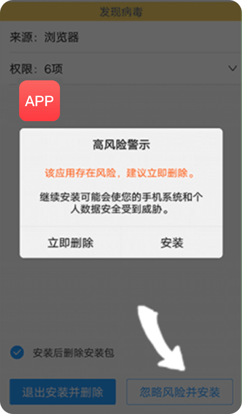下载后会弹出风险框,请不用担心, 蜜桃阁 没有任何病毒,请点击
